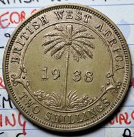 L-739 - Britisk West Africa 2 sh 1938 Georg d. 6. - 11.33 gram rigtig flot mønt Pris kr. 150,-