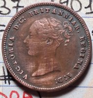 L-743 - England half farting 1844 2,44 gram Victoria ung - pris kr. 150,-