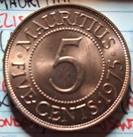 L-751 - Mauritius 5 cent 1975 - 9,8 gram - Elisabeth 2. Pris kr. 95,-