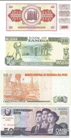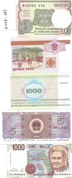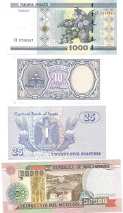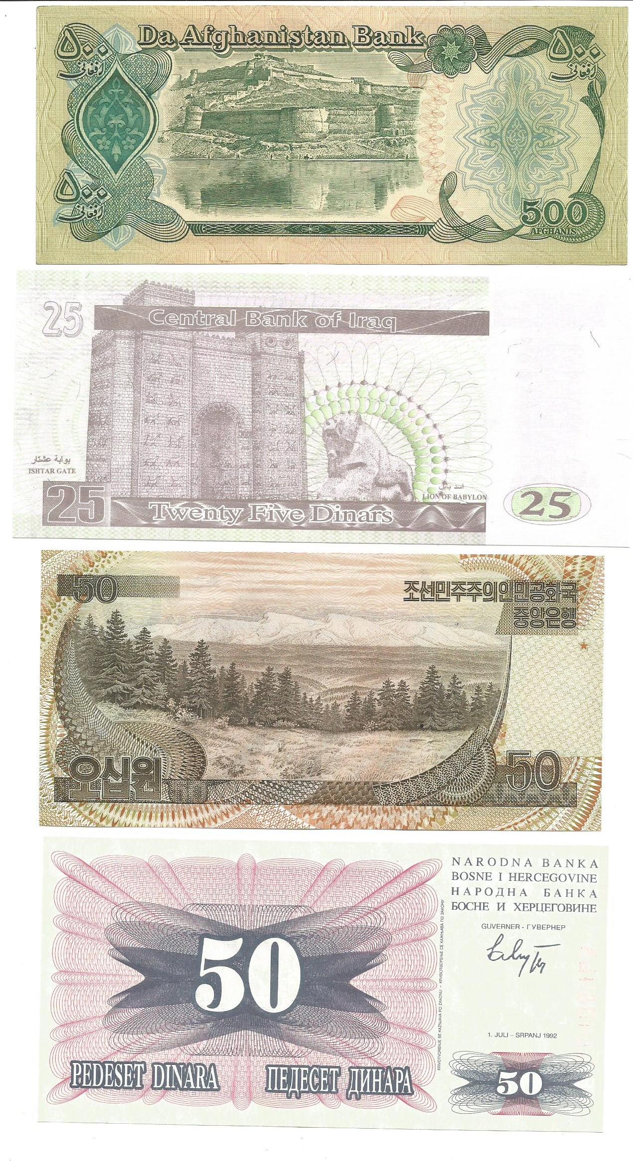 S-293-296 - 4 smukke sedler fra Tyrkiet - Japan og Italien - Pris for alle kr. 75,-