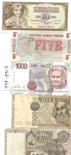 S-261-264 - 4 stk. brugte Italienske sedler - Pris for alle kr. 50,-