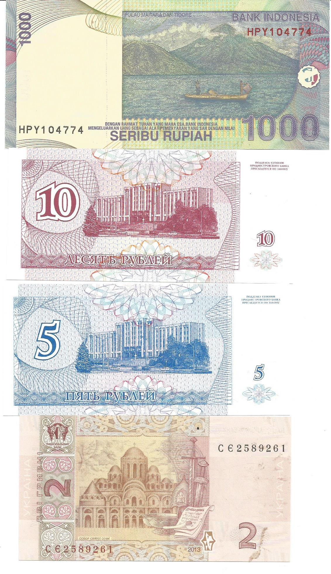 S-269-274 - Indonesien 5 forskellige sedler i ubrugt og ufoldet stand Pris for alle 5 kr 50,-