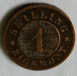L-128 - Danmark 1rbs 1853 i meget høj kvalitet 7,3 gr kobber Pris kr.225,-