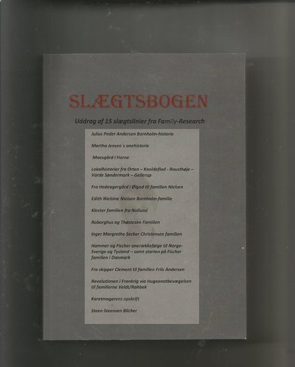 Slægtsbog udgivet som prototype julen 2013 i heftet udgave med 114 sider omfattende familien Andersen/Jensen/Mortensen – Pris kr. 165.